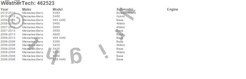 Below is an abbreviated list of applications for the FloorLiner DigitalFit.S350, S400, S430, S450, S500, S55 AMG, S550, S600, S63 AMG, S65 AMG, Mercedes-Benz, 2013, 2012, 2011, 2010, 2009, 2008, 2007, 2006