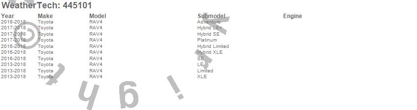 Below is an abbreviated list of applications for the FloorLiner DigitalFit.RAV4, Toyota, 2018, 2017, 2016, 2015, 2014, 2013