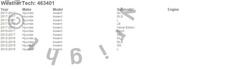 Below is an abbreviated list of applications for the FloorLiner DigitalFit.Accent, Hyundai, 2017, 2016, 2015, 2014, 2013, 2012