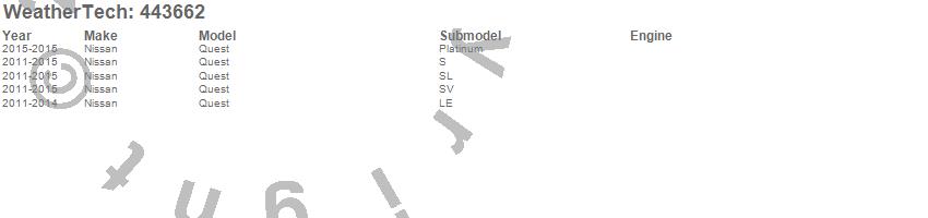 Below is an abbreviated list of applications for the FloorLiner DigitalFit.Quest, Nissan, 2015, 2014, 2013, 2012, 2011