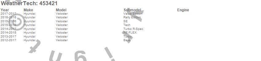 Below is an abbreviated list of applications for the FloorLiner DigitalFit.Veloster, Hyundai, 2017, 2016, 2015, 2014, 2013, 2012