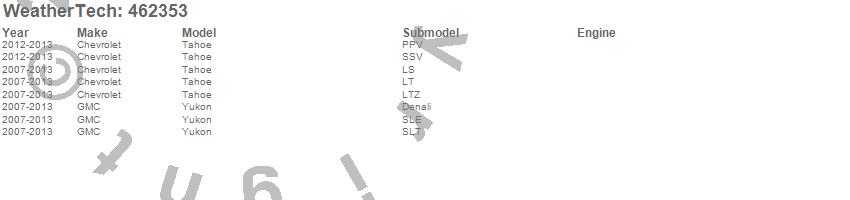 Below is an abbreviated list of applications for the FloorLiner DigitalFit.Tahoe, Yukon, Chevrolet, GMC, 2014, 2013, 2012, 2011, 2010, 2009, 2008, 2007