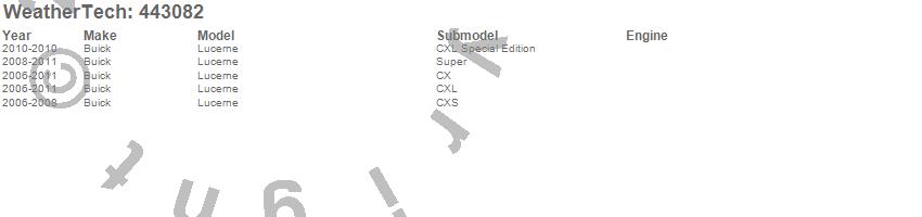 Below is an abbreviated list of applications for the FloorLiner DigitalFit.Lucerne, Buick, 2011, 2010, 2009, 2008, 2007, 2006