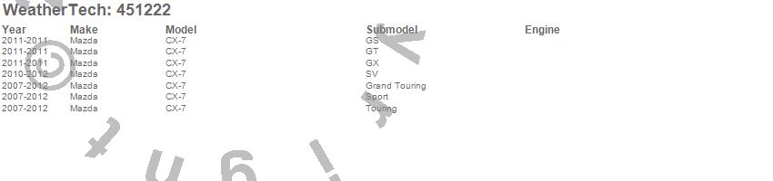 Below is an abbreviated list of applications for the FloorLiner DigitalFit.CX-7, Mazda, 2012, 2011, 2010, 2009, 2008, 2007