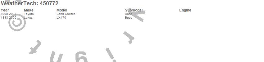 Below is an abbreviated list of applications for the FloorLiner DigitalFit.Land Cruiser, LX470, Lexus, Toyota, 2007, 2006, 2005, 2004, 2003, 2002, 2001, 2000, 1999, 1998