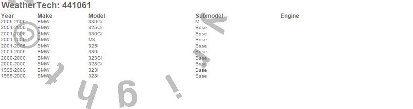 Below is an abbreviated list of applications for the FloorLiner DigitalFit.323Ci, 323i, 325Ci, 325i, 328Ci, 328i, 330Ci, 330i, M3, BMW, 2006, 2005, 2004, 2003, 2002, 2001, 2000, 1999