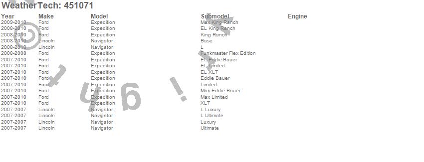 Below is an abbreviated list of applications for the FloorLiner DigitalFit.Expedition, Navigator, Ford, Lincoln, 2010, 2009, 2008, 2007