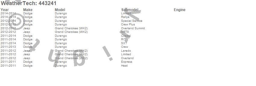 Below is an abbreviated list of applications for the FloorLiner DigitalFit.Durango, Grand Cherokee (WK2), Dodge, Jeep, 2014, 2013, 2012, 2011