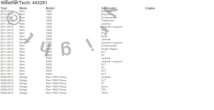 Below is an abbreviated list of applications for the FloorLiner DigitalFit.1500, 2500, 3500, Ram 1500, Ram 2500, Ram 3500, Dodge, Ram, 2012, 2011, 2010, 2009
