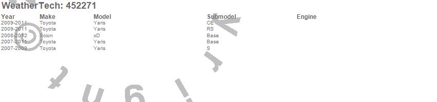 Below is an abbreviated list of applications for the FloorLiner DigitalFit.xD, Yaris, Scion, Toyota, 2012, 2011, 2010, 2009, 2008, 2007