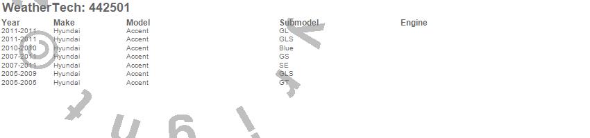 Below is an abbreviated list of applications for the FloorLiner DigitalFit.Accent, Hyundai, 2011, 2010, 2009, 2008, 2007, 2006, 2005