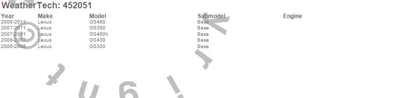 Below is an abbreviated list of applications for the FloorLiner DigitalFit.GS300, GS350, GS430, GS450h, GS460, Lexus, 2011, 2010, 2009, 2008, 2007, 2006