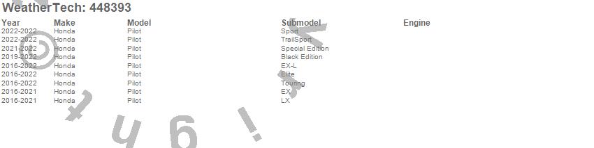 Below is an abbreviated list of applications for the FloorLiner DigitalFit.Pilot, Honda, 2022, 2021, 2020, 2019, 2018, 2017, 2016