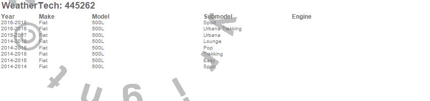 Below is an abbreviated list of applications for the FloorLiner DigitalFit.500L, Fiat, 2018, 2017, 2016, 2015, 2014