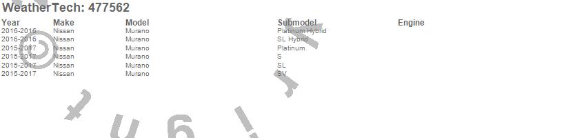 Below is an abbreviated list of applications for the FloorLiner DigitalFit.Murano, Nissan, 2017, 2016, 2015