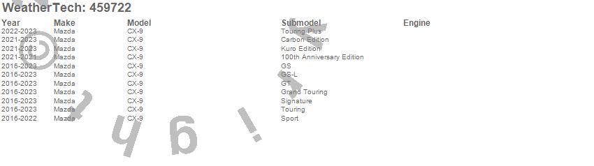 Below is an abbreviated list of applications for the FloorLiner DigitalFit.CX-9, Mazda, 2023, 2022, 2021, 2020, 2019, 2018, 2017, 2016