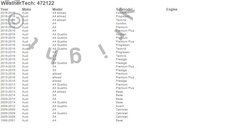 Below is an abbreviated list of applications for the FloorLiner DigitalFit.A4, A4 allroad, A4 Quattro, allroad, S4, Audi, 2016, 2015, 2014, 2013, 2012, 2011, 2010, 2009, 2001, 2000, 1999, 1998, 1997, 1996