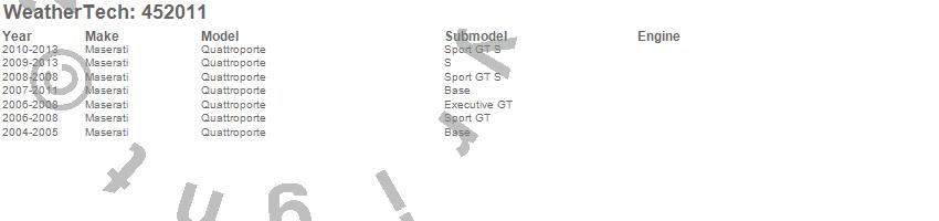 Below is an abbreviated list of applications for the FloorLiner DigitalFit.Quattroporte, Maserati, 2013, 2012, 2011, 2010, 2009, 2008, 2007, 2006, 2005, 2004