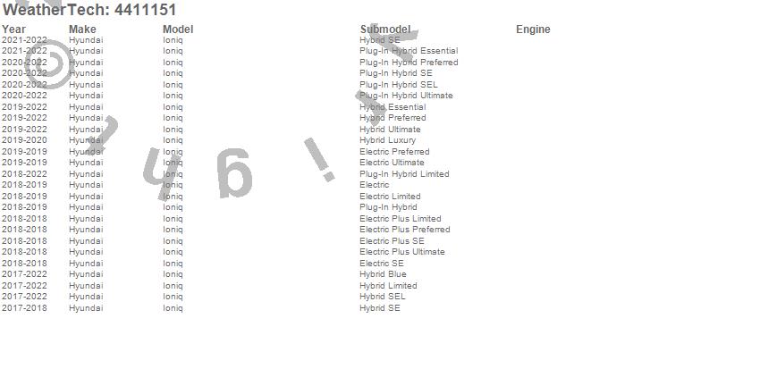 Below is an abbreviated list of applications for the FloorLiner DigitalFit.Ioniq, Hyundai, 2022, 2021, 2020, 2019, 2018, 2017
