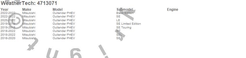Below is an abbreviated list of applications for the FloorLiner DigitalFit.Outlander PHEV, Mitsubishi, 2022, 2021, 2020, 2019, 2018