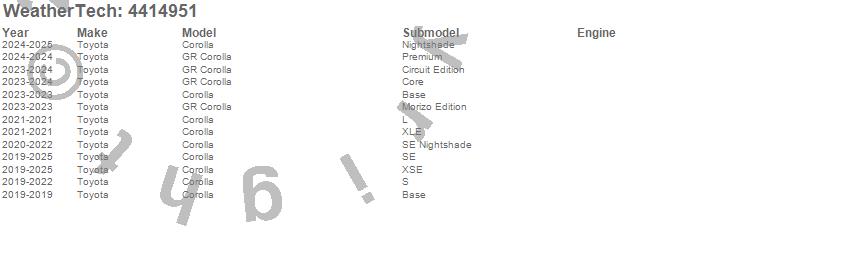 Below is an abbreviated list of applications for the FloorLiner DigitalFit.Corolla, GR Corolla, Toyota, 2025, 2024, 2023, 2022, 2021, 2020, 2019