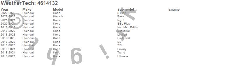 Below is an abbreviated list of applications for the FloorLiner DigitalFit.Kona, Kona N, Hyundai, 2023, 2022, 2021, 2020, 2019, 2018