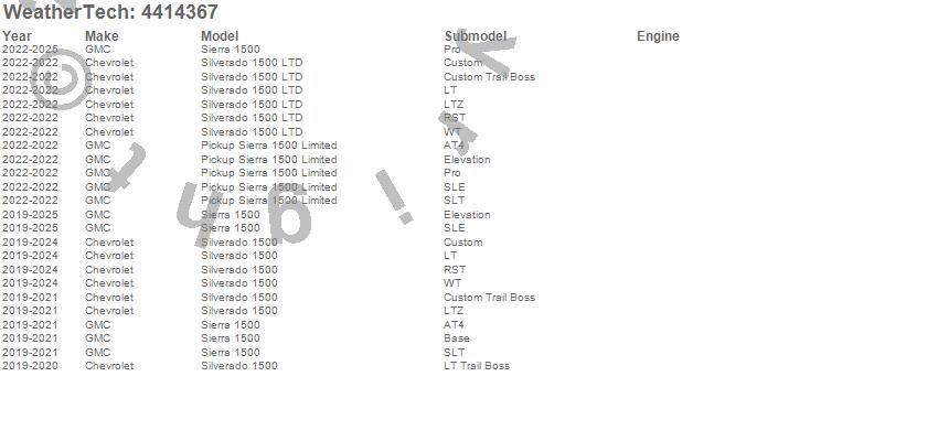 Below is an abbreviated list of applications for the FloorLiner DigitalFit.Pickup Sierra 1500 Limited, Sierra 1500, Silverado 1500, Silverado 1500 LTD, Chevrolet, GMC, 2026, 2025, 2024, 2023, 2022, 2021, 2020, 2019