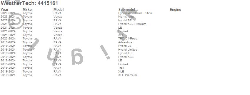 Below is an abbreviated list of applications for the FloorLiner DigitalFit.RAV4, Venza, Toyota, 2025, 2024, 2023, 2022, 2021, 2020, 2019