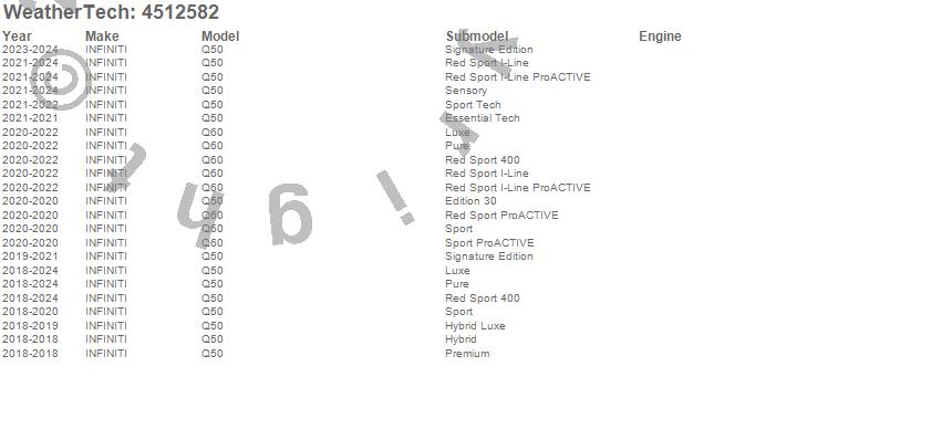 Below is an abbreviated list of applications for the FloorLiner DigitalFit.Q50, Q60, INFINITI, 2024, 2023, 2022, 2021, 2020, 2019, 2018