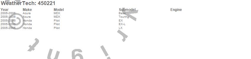 Below is an abbreviated list of applications for the FloorLiner DigitalFit.MDX, Pilot, Acura, Honda, 2006, 2005
