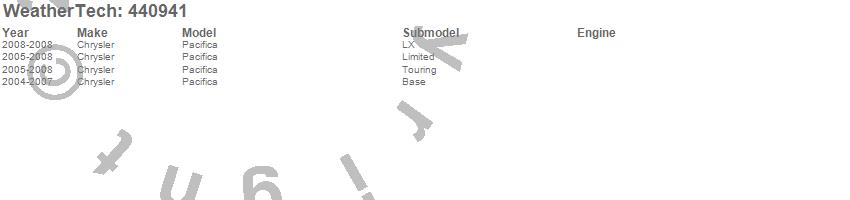 Below is an abbreviated list of applications for the FloorLiner DigitalFit.Pacifica, Chrysler, 2008, 2007, 2006, 2005, 2004
