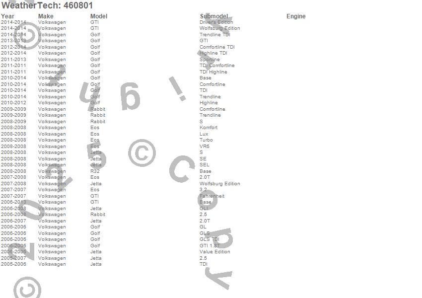 Below is an abbreviated list of applications for the FloorLiner DigitalFit.Eos, Golf, GTI, Jetta, R32, Rabbit, Volkswagen, 2014, 2013, 2012, 2011, 2010, 2009, 2008, 2007, 2006, 2005