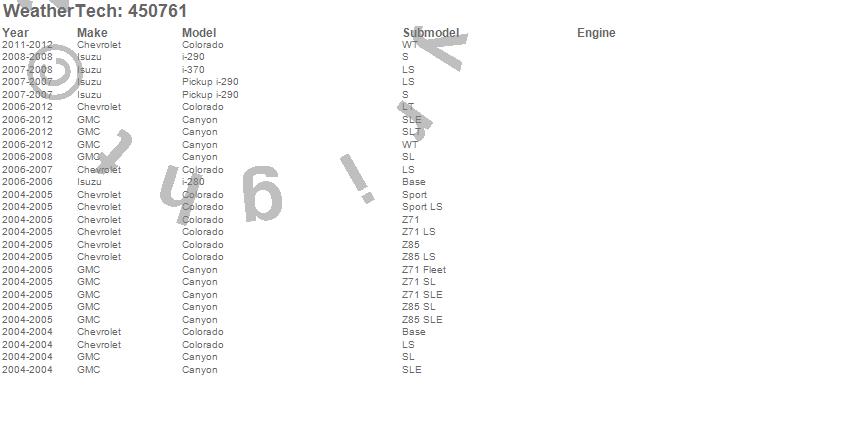 Below is an abbreviated list of applications for the FloorLiner DigitalFit.Canyon, Colorado, i-280, i-290, i-370, Chevrolet, GMC, Isuzu, 2012, 2011, 2010, 2009, 2008, 2007, 2006, 2005, 2004