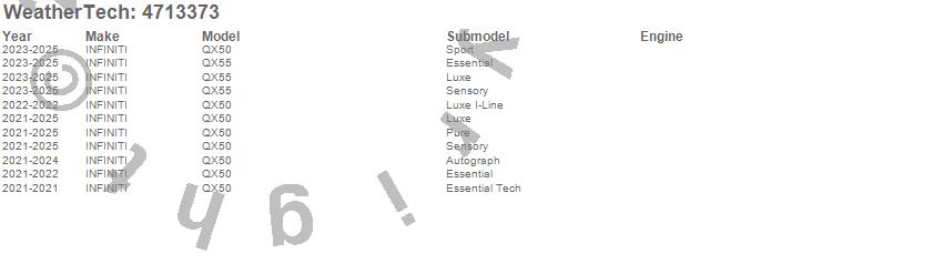 Below is an abbreviated list of applications for the FloorLiner DigitalFit.QX50, QX55, INFINITI, 2025, 2024, 2023, 2022, 2021