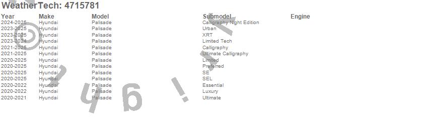 Below is an abbreviated list of applications for the FloorLiner DigitalFit.Palisade, Hyundai, 2025, 2024, 2023, 2022, 2021, 2020