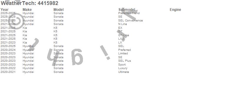 Below is an abbreviated list of applications for the FloorLiner DigitalFit.K5, Sonata, Hyundai, Kia, 2026, 2025, 2024, 2023, 2022, 2021, 2020
