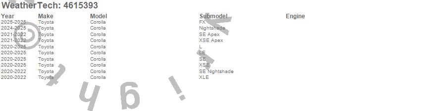 Below is an abbreviated list of applications for the FloorLiner DigitalFit.Corolla, Toyota, 2025, 2024, 2023, 2022, 2021, 2020