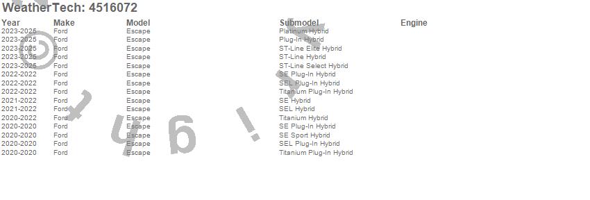 Below is an abbreviated list of applications for the FloorLiner DigitalFit.Escape, Ford, 2026, 2025, 2024, 2023, 2022, 2021, 2020