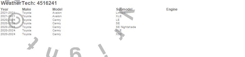 Below is an abbreviated list of applications for the FloorLiner DigitalFit.Avalon, Camry, Toyota, 2024, 2023, 2022, 2021, 2020