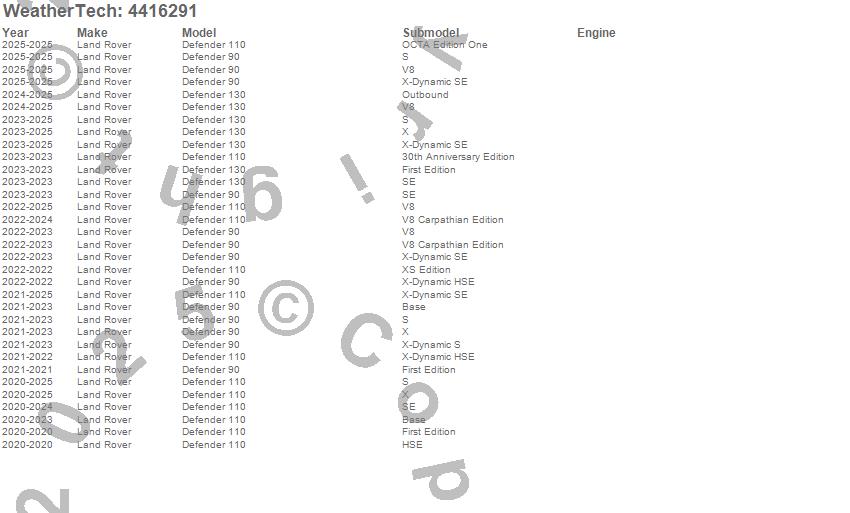 Below is an abbreviated list of applications for the FloorLiner DigitalFit.Defender 110, Defender 130, Defender 90, Land Rover, 2025, 2024, 2023, 2022, 2021, 2020