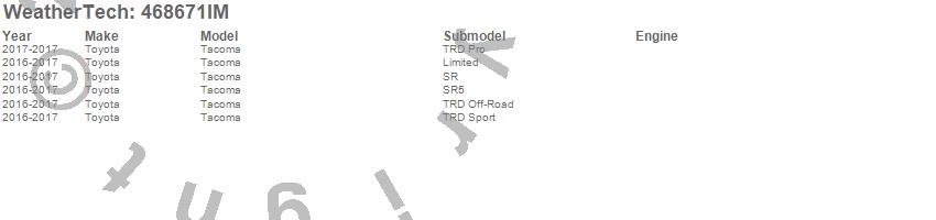 Below is an abbreviated list of applications for the FloorLiner HP.Tacoma, Toyota, 2017, 2016