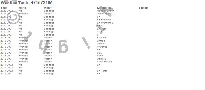 Below is an abbreviated list of applications for the FloorLiner HP.Sportage, Tucson, Hyundai, Kia, 2022, 2021, 2020, 2019, 2018, 2017
