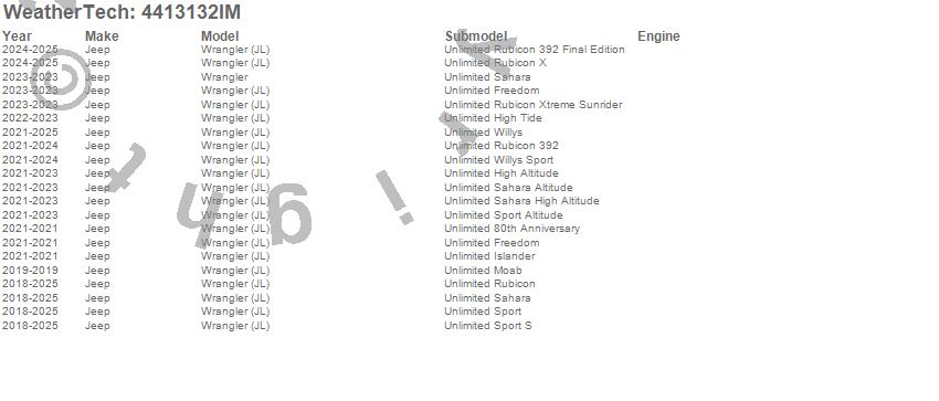 Below is an abbreviated list of applications for the FloorLiner HP.Wrangler, Wrangler (JL), Jeep, 2026, 2025, 2024, 2023, 2022, 2021, 2020, 2019, 2018