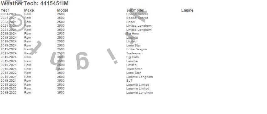 Brand: WeatherTechPart Number: 4415451IMFloor Mat Set Type: Black - FrontUPC: 787765611572
