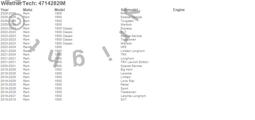 Below is an abbreviated list of applications for the FloorLiner HP.1500, 1500 Classic, Ram, 2025, 2024, 2023, 2022, 2021, 2020, 2019