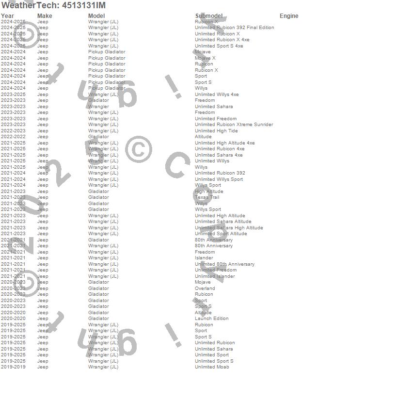 Below is an abbreviated list of applications for the FloorLiner HP.Gladiator, Pickup Gladiator, Wrangler, Wrangler (JL), Jeep, 2026, 2025, 2024, 2023, 2022, 2021, 2020, 2019, 2018