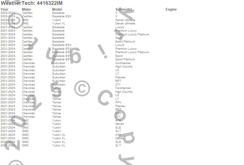 Below is an abbreviated list of applications for the FloorLiner HP.Escalade, Escalade ESV, Suburban, Tahoe, Yukon, Yukon XL, Cadillac, Chevrolet, GMC, 2026, 2025, 2024, 2023, 2022, 2021