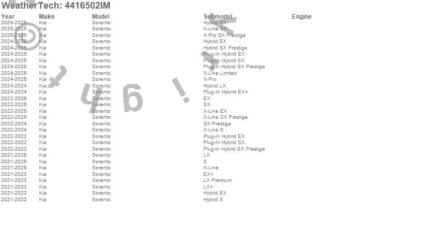 Below is an abbreviated list of applications for the FloorLiner HP.Sorento, Kia, 2025, 2024, 2023, 2022, 2021