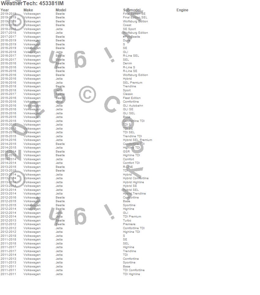 Below is an abbreviated list of applications for the FloorLiner HP.Beetle, Jetta, Volkswagen, 2019, 2018, 2017, 2016, 2015, 2014, 2013, 2012, 2011