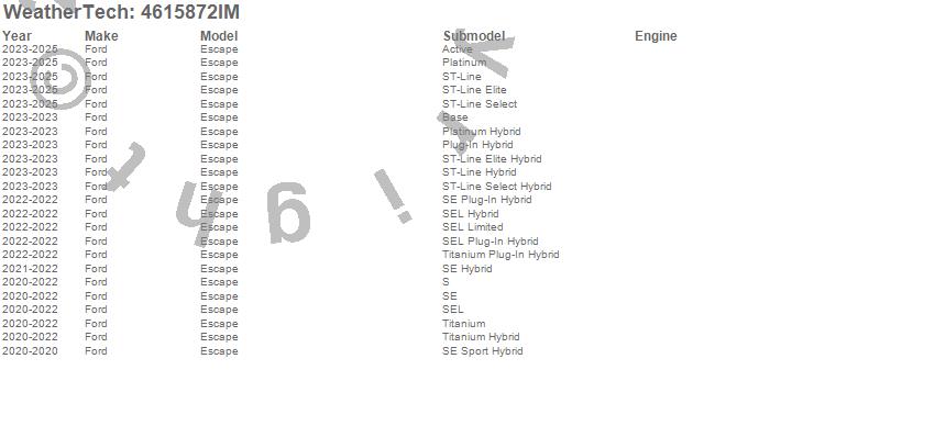 Below is an abbreviated list of applications for the FloorLiner HP.Escape, Ford, 2026, 2025, 2024, 2023, 2022, 2021, 2020